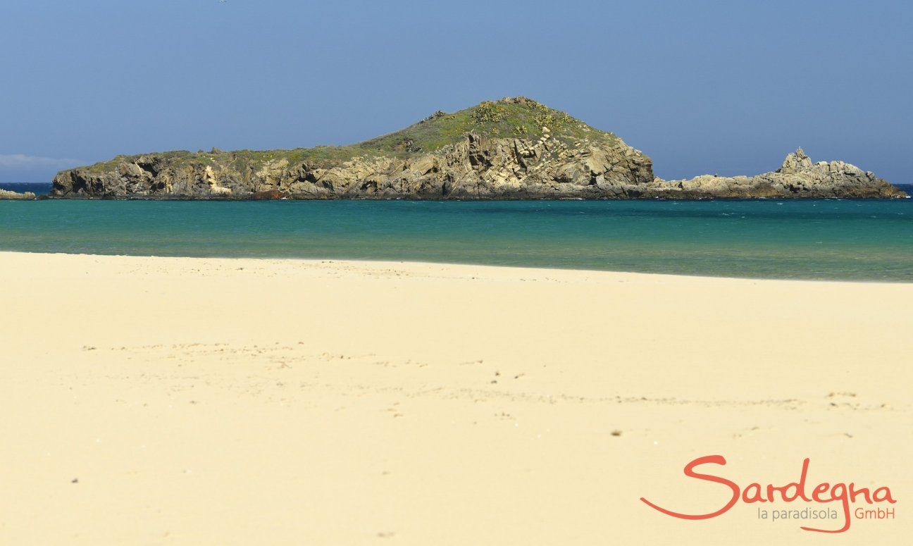 Superate le spiagge di Chia e seguite la strada costiera. Dopo circa 5-7 km vedrete davanti a voi il blu intenso del mare di Tuerredda e la sua lunga spiaggia. Anche qui si trova un isolotto proprio davanti alla spiaggia.